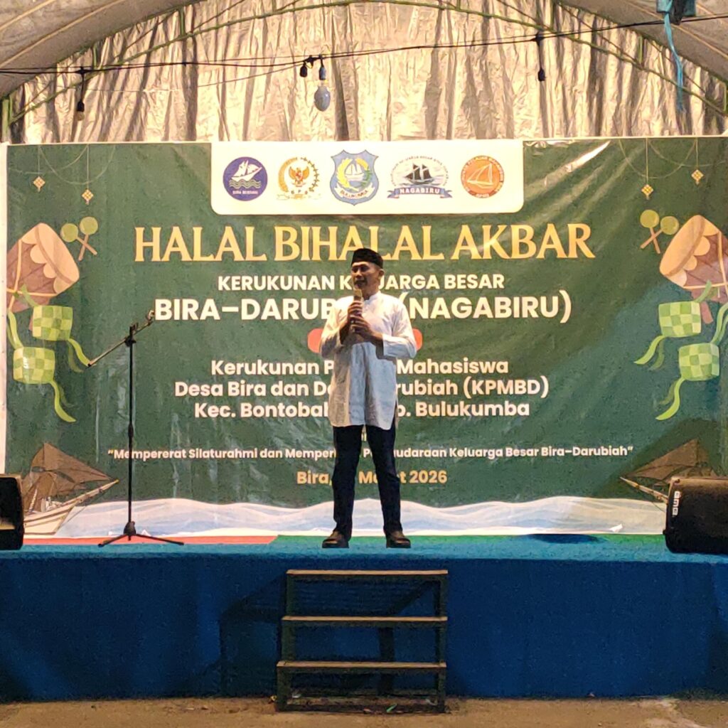 www.desabira.com – Suasana penuh kehangatan dan kebersamaan mewarnai kegiatan Halal Bihalal Akbar Keluarga Besar Bira–Darubiah (NAGABIRU) bersama Kerukunan Pelajar Mahasiswa Desa Bira dan Darubiah (KPMBD) yang digelar pada Senin malam (23/3/2026) pukul 20.00 WITA di halaman Kantor Desa Bira.